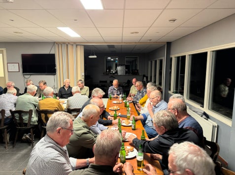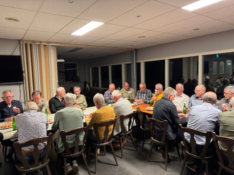 …STIL werd het nooit!! Wanneer leden, oud-leden en partners tijdens de jaarlijkse stamppotbuffet avond de nieuwjaarswensen en laatste nieuwtjes uitwisselen ontstaat er al snel een onbeschrijfelijk sfeertje. De decibels schieten hoog in de meter, wanneer humor en lachsalvo’s elkaar vergezellen. En opnieuw “volle bak”! Noemen wij daarbij het overheerlijke eigen bereide buffet – samengesteld door de stamppot commissie – dan past hierbij alléén maar een luid welgemeend applaus van alle aanwezigen.